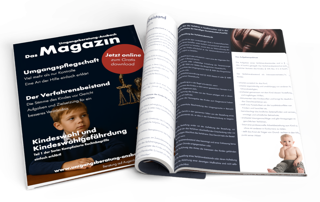 Dann fasst das Gericht einen Beschluss, in dem es ausdrücklich einen Verfahrensbeistand/ eine Verfahrensbeiständin für das Verfahren bestellt und auch gleichzeitig in dem Beschluss aufnimmt, welche konkreten Aufgaben der Verfahrensbeistand hat.